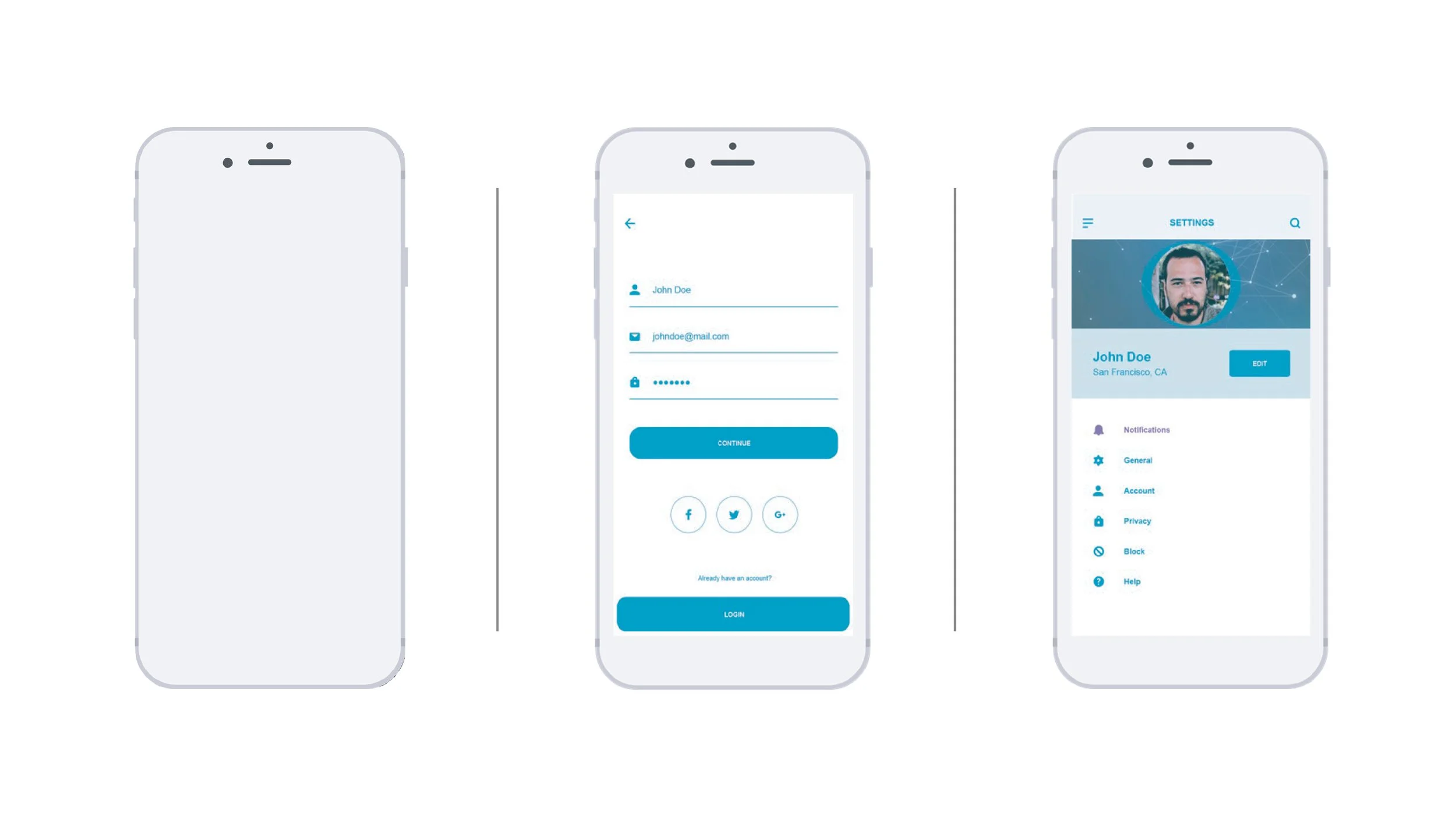 Assets from Adobe XD’s Free Kit were used as well as Adobe Stock Images